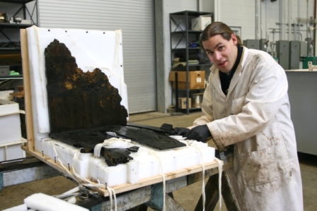 美国监控中心 送到马里兰的木胸部 经过艾尔莎桑狗 发表于2010年2月8日2015年11月27日 从炮塔中恢复的木箱已经送到了马里兰州考古保护实验室冷冻干燥。该实验室配备了大型冻干机,足以满足伪影的大小。 下面,将为其旅程包装工件。