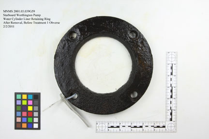 Both the rings and liners were in great condition and exhibited some subtle design features, such as the use of a partially hollow brass casting to save material and guide pins on the retaining ring to hold the liner in position. We have now removed 83 separate parts making up each Worthington pump, with a few more still to come!