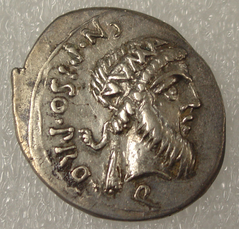 这是一枚银币,上面印着公元前49-48年庞培大帝的头像。庞培最出名的可能是他与凯撒的联盟,然后与凯撒决裂并开战,凯撒试图接管罗马共和国。庞培逃到埃及,在那里他被暗杀,他的头被献给了凯撒。我对罗马历史特别着迷,尤其是这个时期,所以能研究那个时期的历史是非常令人兴奋的。