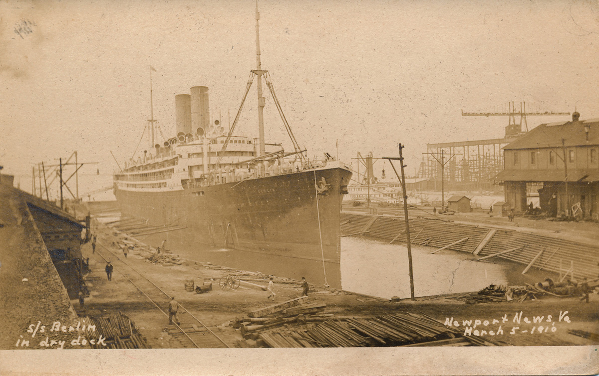 第一张是一张照片明信片,显示SS柏林停靠在弗吉尼亚州的纽波特纽斯。第二张是党卫军的照片美国在1950年的路上。