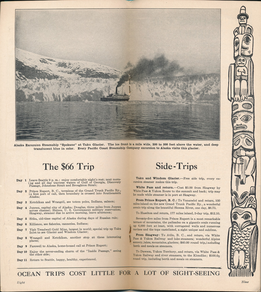 与太平洋轮船公司的阿拉斯加邮轮的小册子。
