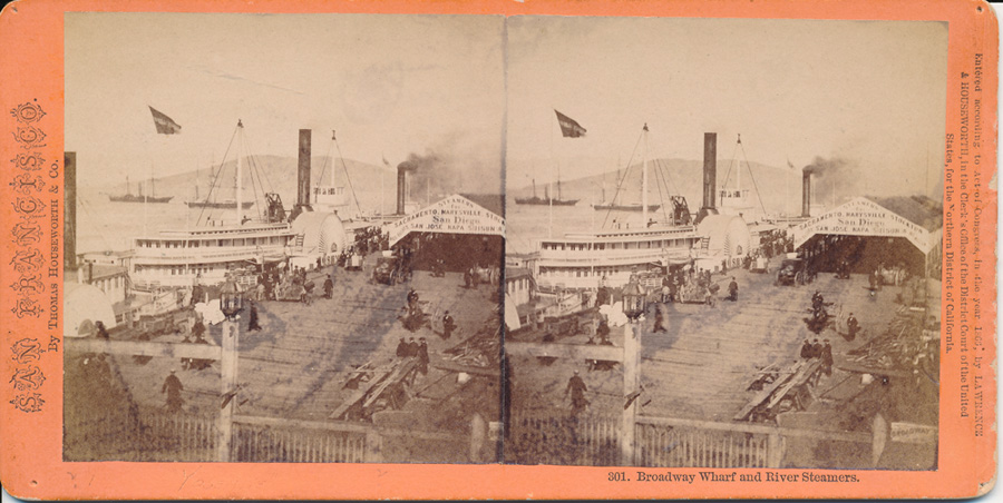 Broadway Wharf and river steamers in San Francisco