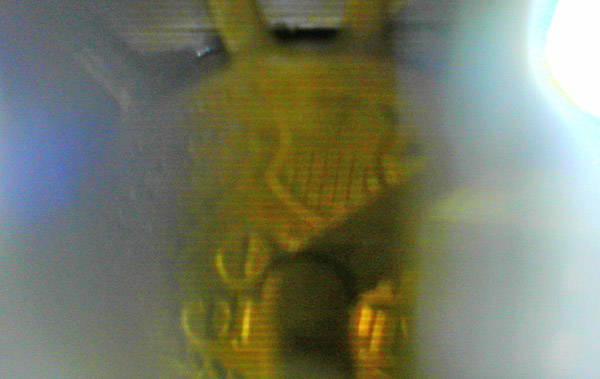 A special part of the presentation at the Gallery Crawl involved taking an endoscope to two small cabins on the model that are furnished and very difficult to see because they are so small. They include chairs with actual fabric cushions, a table with wine and goblets, and carpet.