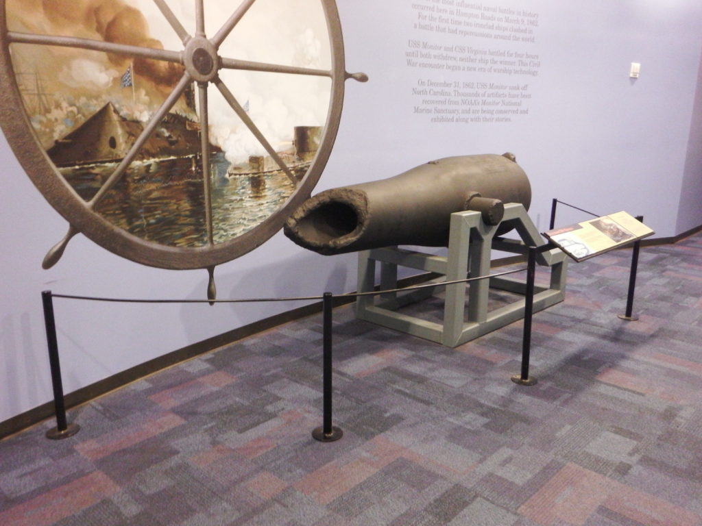 Last week I took a break from干冰清洗to work on the “VirginiaGun,” an IX-inch Dahlgren shell gun which sits at the entrance to the Ironclad Revolution exhibit. It was recovered along with the USS梅里马克由同盟国人使用,并在更名的CSS上使用Virginia在汉普顿路(1862)的战役中。这是一个吸引人群的迷人物体。不幸的是,它也倾向于抽出徘徊的手。我的工作是从枪管侧面去除油腻的指纹。这让我思考了我们如何保护物体以及如何在博物馆周围有“不触摸”标志,但访客可能不明白为什么这是一个重要的规则。