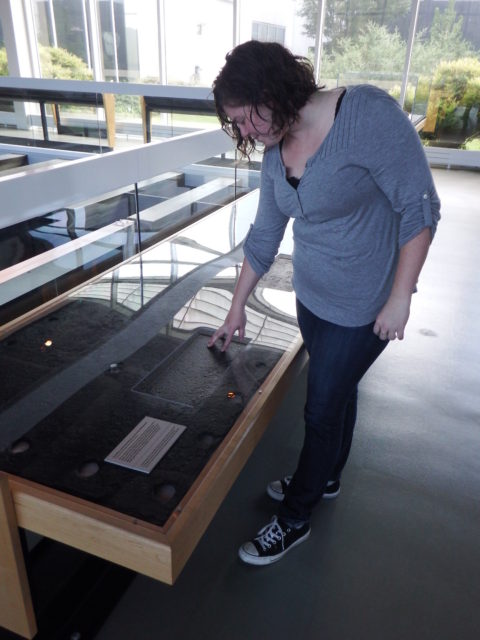 Most of the time, however it is not appropriate to touch a display. Museums employ many techniques to prevent this. We rely on people’s knowledge of museum etiquette to keep a respectful distance. This is common in art museums. Visitors can stand near a painting or statue on a pedestal, but we’ve been conditioned not to touch. However, if it’s fragile or there will be a lot of interest in it, a deterrent may be employed. Security guards, barriers, and signs encourage people to stand at an appropriate distance. Of course this is also not full proof. TheVirginiaGun的栏杆靠近人工制品,即使是我们最小的访客也可以触及它。