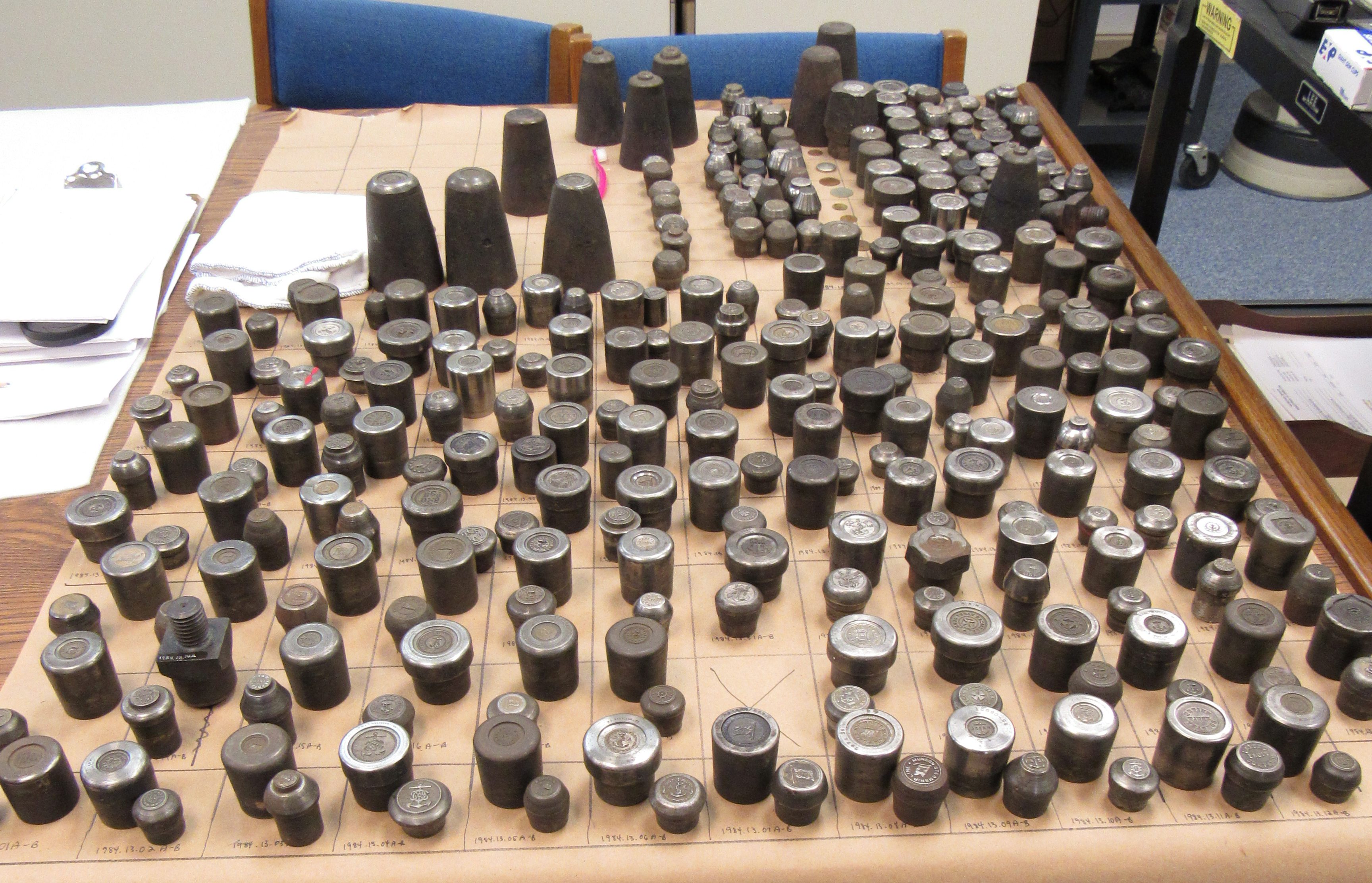 And what I mean when I say cataloged is that the collection has been gone through thoroughly, with pictures of each individual die as well as a condition report. Research should be done on any markings or known makers, etc. When it was realized that this had not been done, we went ahead and pulled them and now have a wonderful volunteer undertaking the task for us.