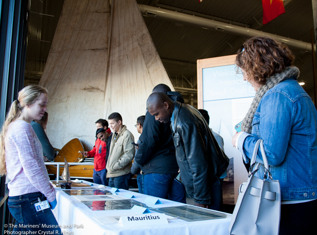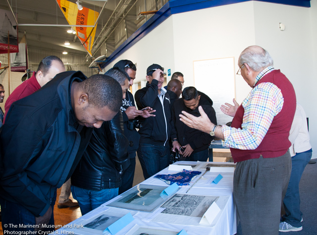 集合 海岸警卫队学生的访问 通过雷切尔·康利 贴在2016年12月6日2016年12月2日 28日,美国海岸警卫队国际海事官员学校的学生又来了一次。他们大约一年访问我们两次,每次都是来自不同国家的不同学生群体。这次我们有来自27个不同国家的学生,我们有除了5个国家以外的所有国家的文物,这还不算太糟。大多数的人工制品都是打印出来的,但我们尽可能地提取出3D物体。非常感谢我们的摄影师Crystal分享她的照片! 来自巴巴多斯的水手情人节,大约1875年。 为大家做准备,拿出一根鲨鱼脊椎骨手杖,手杖上刻着巴厘岛火葬尖塔的雕刻。 这群人从斐济的泳裤中得到了乐趣。