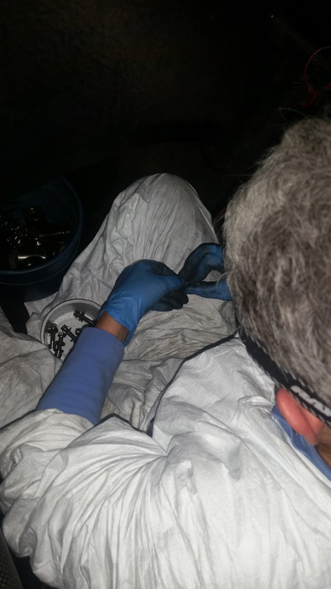 该过程完美无缺,除了必须钻出一种方式以对中央吊舱施加一点压力(将其拉向赫尔港),我们不得不进行很少的操纵才能使所有连接点排队。然后,我重新安装了前向横梁中的硬件,并在船尾连接到船体的点上安装了新硬件。我还安装了将前向横梁连接到匕首板井的船体的螺栓。接下来,将硬件安装在中央吊舱和斯特恩横梁之间的连接点上,这是一个有趣的经历,只要这样做的人不是幽闭恐惧症(值得庆幸的是,我不是)!