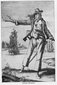 当机架船被牙买加的皇家海军开辟了哈马赫,而且大多数男性船员在持有的避难处,而安和玛丽试图争夺英国水手的部落。玛丽非常厌恶,船员的行为,她实际上将她的手枪解雇进入持有至少一个海盗和伤害其他人的人。船舶被捕获后,皇家港的英国法院惊讶地发现,这两个仰卧是女性的两个盗版都是女性。Jack and the rest of the crew were convicted (Mary and Ann received a temporary reprieve because they both were pregnant) and as they were being escorted to the gallows Ann’s last tender words to her lover were “if you had fought like a man, you wouldn’t be hang’d like a dog.” Let’s hear it for women telling it like it is!!!!
