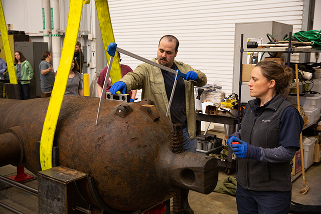这是一个非常辛苦的过程;钻出固结物的主要过程为每支射孔枪14-16小时。还有大约18个月的准备工作——清理前方部分,让我们排好钻头,安装新的管道,研究和设计钻头系统,以及建造所有的设备。就像水手博物馆正在进行的许多保护项目一样,这是我们只有一次机会做对的事情,所以“辛苦和小心”是游戏的名称!