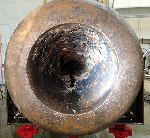 现在......所有这些都如何参加枪支的保护?我们所有监控物体的主要目标是去除海洋盐(特别是氯化物),因为这些使材料不稳定,如果它们未被删除,则会破坏物体。灰铸铁比其他金属从其他金属脱落更难以去除盐。盐主要存在于石墨下方的金属表面,因此盐需要额外的“层”,盐需要通过返回退出。如果您在盐顶部的石墨顶部有混凝土,那么这是两个额外的层。石墨非常多孔,所以可以通过它浸泡盐。混凝土......不是那么多;它是一种更密集,更硬的材料,几乎不可能得到足够的盐,仍然被混凝土覆盖。所以整个铸铁物体的表面 - 像Xi-inch Dahlgren一样 -必须必须清洗以去除固结物,否则就不可能把所有的盐取出来并稳定材料。在这种情况下,整个表面包括11英尺长的炮孔内部,而不仅仅是外部。我们都很擅长用凿子,但11英尺对我们来说有点遥不可及!