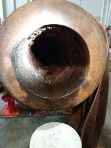 一旦我们靠近枪的背部,我们需要改变一点。从筒的前部到10英尺的深度,枪孔的直径恰好11英寸。但是,最后几英寸的孔形成弯曲的火药室,圆柱形芯片钻头不能用来清洁它。通常在用弯曲粉末室清洁枪时,使用钻孔是不可能的;你必须使用(非常)长的凿子。但是,如果你有机会研究和措施一个相同的枪......好吧,给了一些其他选择!