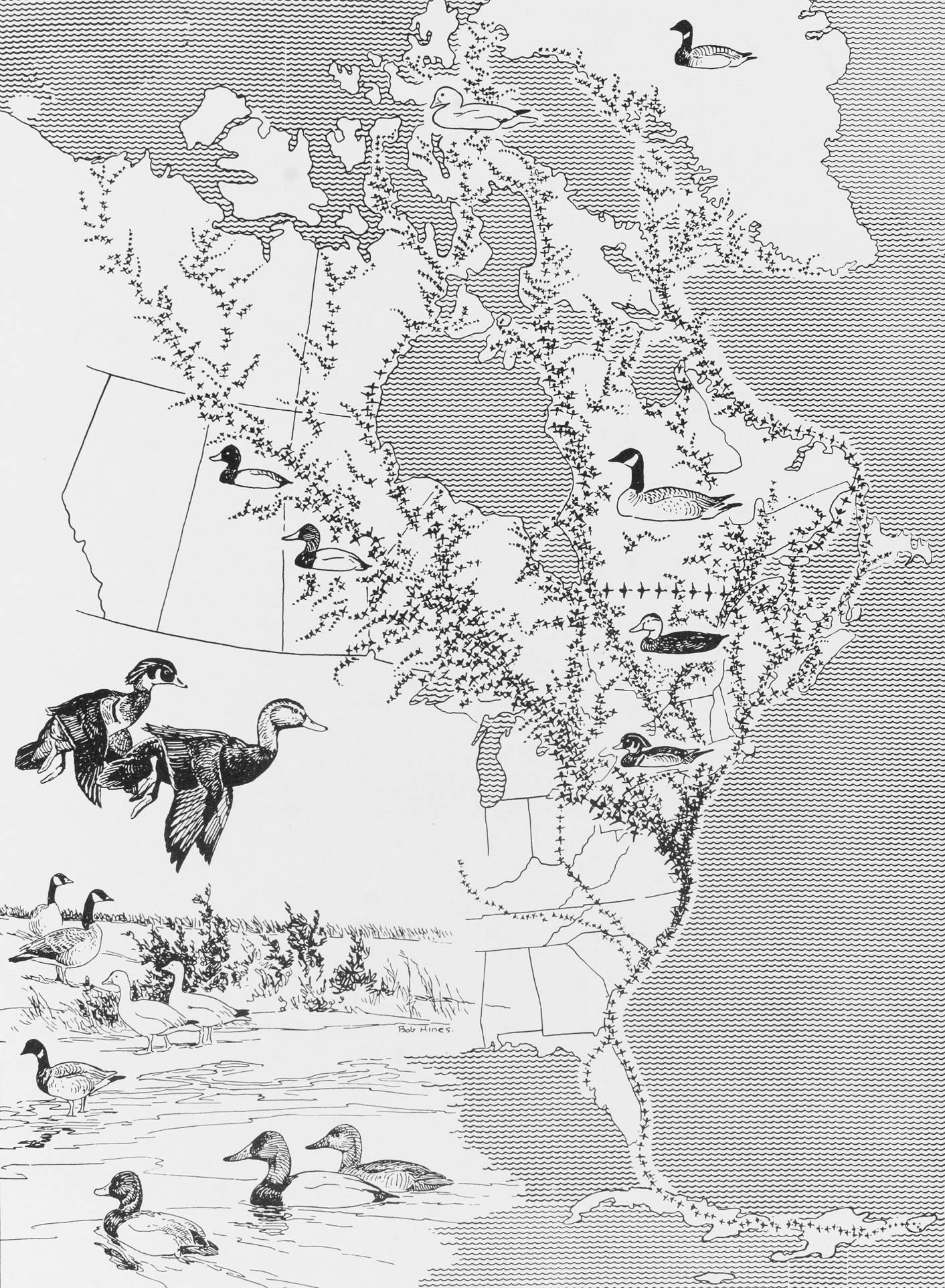 The Atlantic Flyway welcomes birds from the eastern Arctic, the coast of Greenland, Labrador, Newfoundland, Hudson Bay, the Yukon, and the prairie areas of Canada and the United States. Millions of ducks, swans, and geese move along the coast and winter on the Chesapeake and North Carolina sounds.