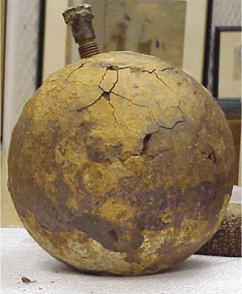 这种催化反应对金属是毁灭性的,即使是在海水中。特别是铁,在某些环境中会溶解成无物,等等监控大部分的铸铁已经腐蚀了,直到原来的合金只剩下碳了。通过在化学溶液中储存和处理金属,我们可以“暂停”这个过程,但只要有氯化物存在,物体就处于危险之中。在没有去除盐的情况下干燥铁质会导致铁质开始开裂,表面会剥落,出现模糊的橙色粉末(嘿!这次是新的颜色!),裂缝,橙色粉末……我不是在这里留下了一门大炮吗?这里以前肯定有一门大炮。