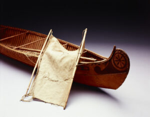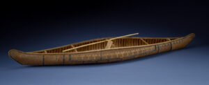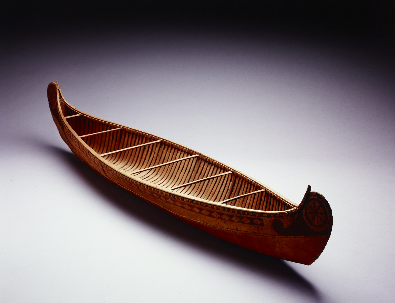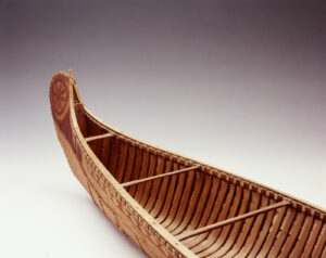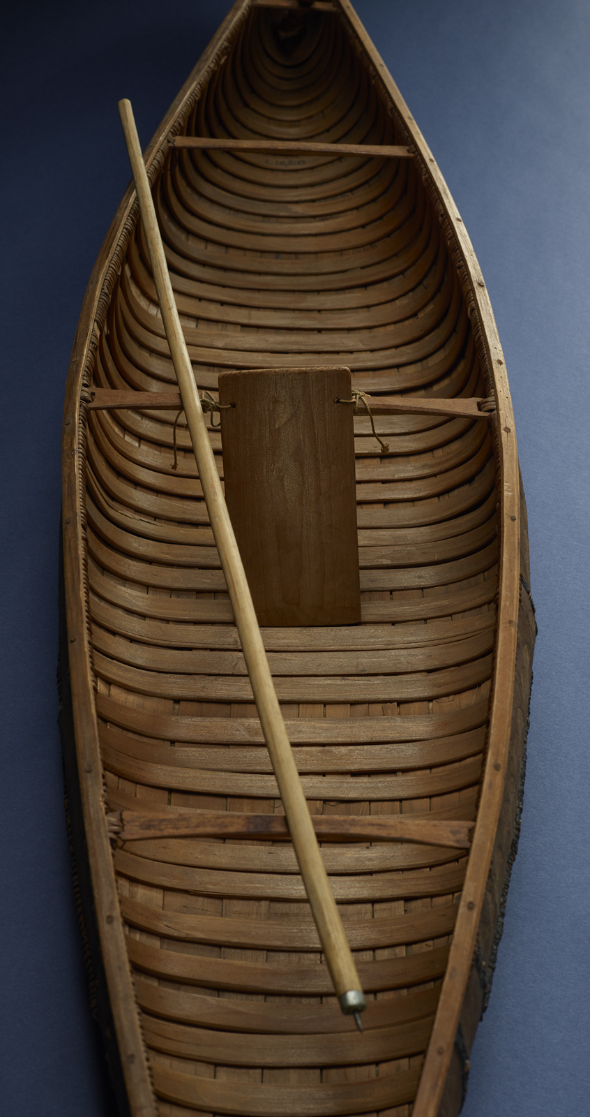 从我们收集建于Adney模型1931 and represents the birch bark canoe, used in the Athabascan culture for hundreds of years. The Athabascan Indigenous culture extends from Alaska into parts of Canada and the Northern United States where birch trees are native. Birch was a great boat building material for the native people.