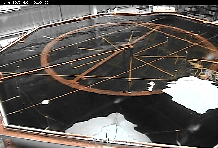 After a successful season of hands on work removing concretion from theMonitor’s Turret, conservators have cleaned the tank fitted anodes for electrolytic reduction, and added 90,000 gallons of water purified by reverse osmosis. When the electrolyte had been added, everything was ready to begin active desalination and start the process of removing the chloride salts which had accumulated in the turret over 140 years on the sea floor. Power was switched on to the electrolytic reduction system and on September 23rdthe level of chlorides was measured after 1 week at 4.5 parts per million (ppm). This doesn’t sound like a lot at first, but this concentration of chloride in 90,000 gallons of water is equivalent to 1.5kg, or 3.3 pounds of chloride removed! After the second week of desalination, the turret treatment solution was tested again on September 30th and had increased to 7.9 ppm, equivalent to 2.7kg or almost 6 pounds of chloride. These first few weeks of Turret desalination are graphed below:
