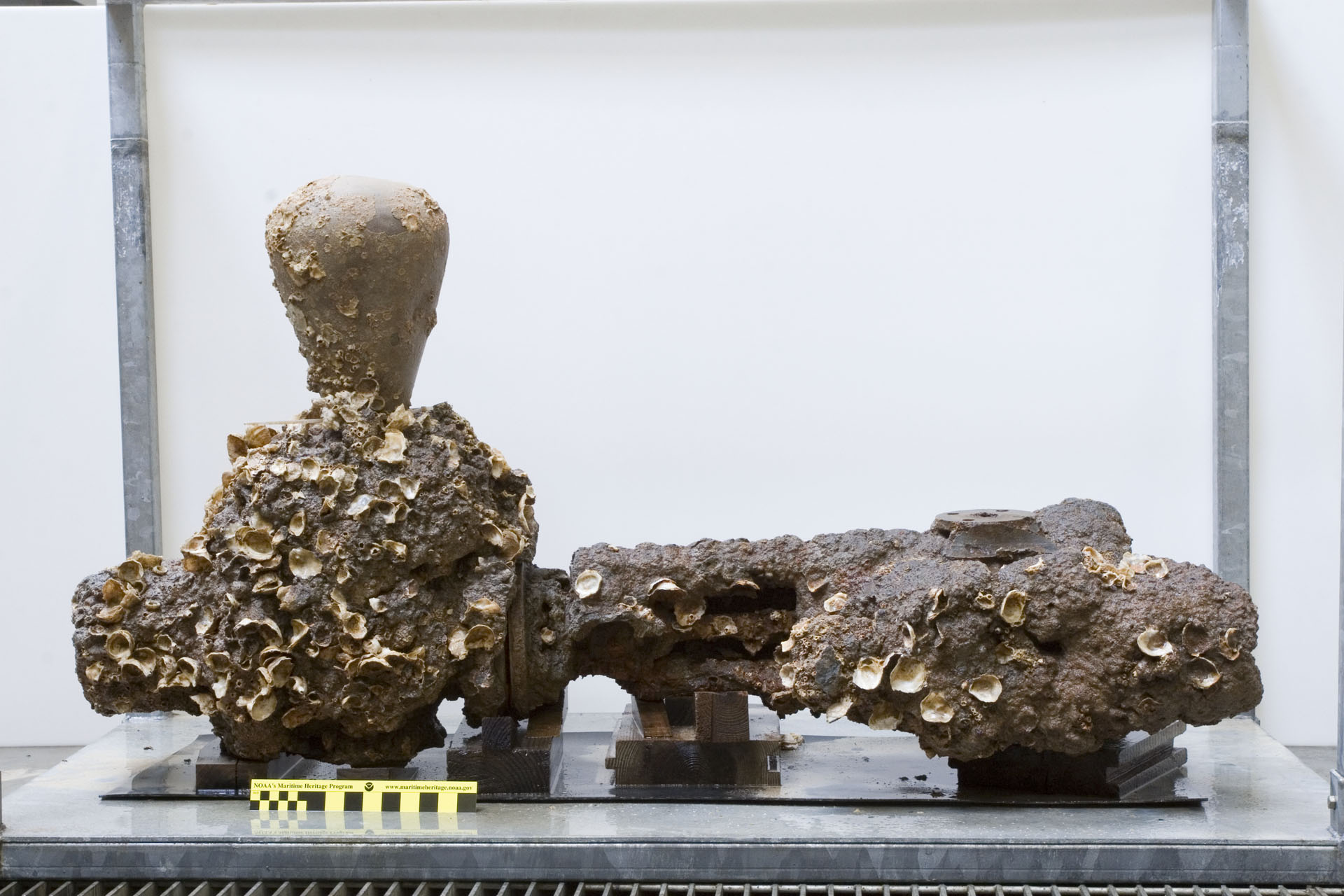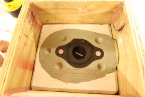 An eventful day at the Buffalo State College foundry! Final preparations are underway for the iron pour tomorrow. The newly constructed iron furnace has been lined with refractory clay and assembled. Supplies of fuel, in the form of coke, a product of coal combustion, have arrived and Eric and Will joined others in breaking up cast iron radiators into small pieces which are easier to melt down. Many skilled artists have prepared molds for the pour, but I think its safe to say we are the only team recreating parts of the USSMonitor!