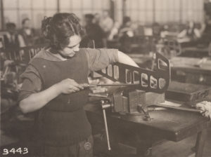 1918年初,当位于费城的美国海军海军飞机制造厂需要增加劳动力时,便开始培训和雇佣女性。据《海军之翼:1917-1956年海军飞机工厂的历史》一书的作者威廉·f·特林布尔(William F. Trimble)说,工厂的第一位女工人是玛丽昂·埃尔德顿(Marion Elderton),当时她已经是一名秘书。这种转变发生在1917年12月,到1918年6月,劳动力中有218名女性。一年后(1918年12月),NAF女性就业人数达到890人,占劳动力的24.5%。