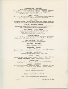 Greetings readers, and welcome back to the Library blog. In its day, the SSUnited Stateswas the pinnacle of transatlantic transportation. Passengers could travel in style, and enjoy all manner of comforts from air conditioning to news broadcasts. The luxury of the voyage was also present in their dining, as a rich tapestry of food options was presented for each meal. Roughly 55 years ago on a Friday in 1957, passengers on the SSUnited Stateswere treated to the following menu for their dinner.