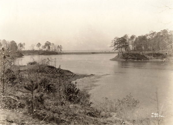 The above image (dated February 27, 1931) shows the spot where the founders had originally intended for the main museum building to placed. It was a spot on Lake Maury overlooking Lion’s Bridge and the James River. Several plans and sketches were drawn up showing an impressive, rectangular building.