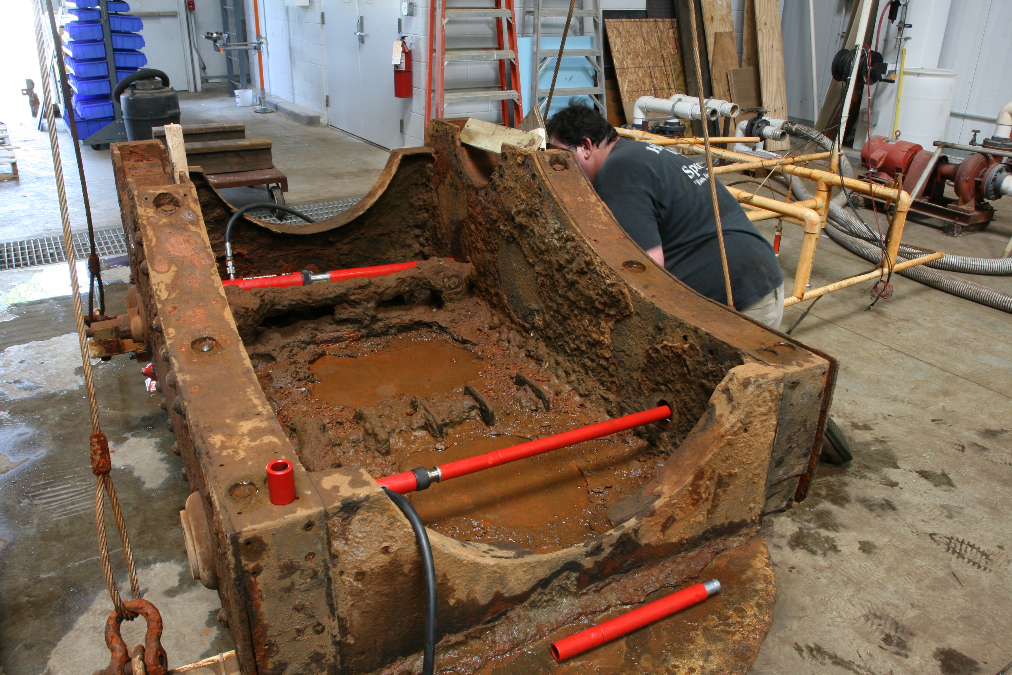 我们使用各种各样的齿轮和设备,包括架空起重机,吊带和电缆,卸扣,链式起重机,升降平台,引线,充气轮胎,推车,叉车,和良好的老式的汗水和肘部油脂。但有时,即使是最好的设备和规划,也无法应对140年的腐蚀性海洋环境。因此,许多这些珍贵的文物来自美国军舰监控在拆除和保存后太不稳定,无法搬离展品。