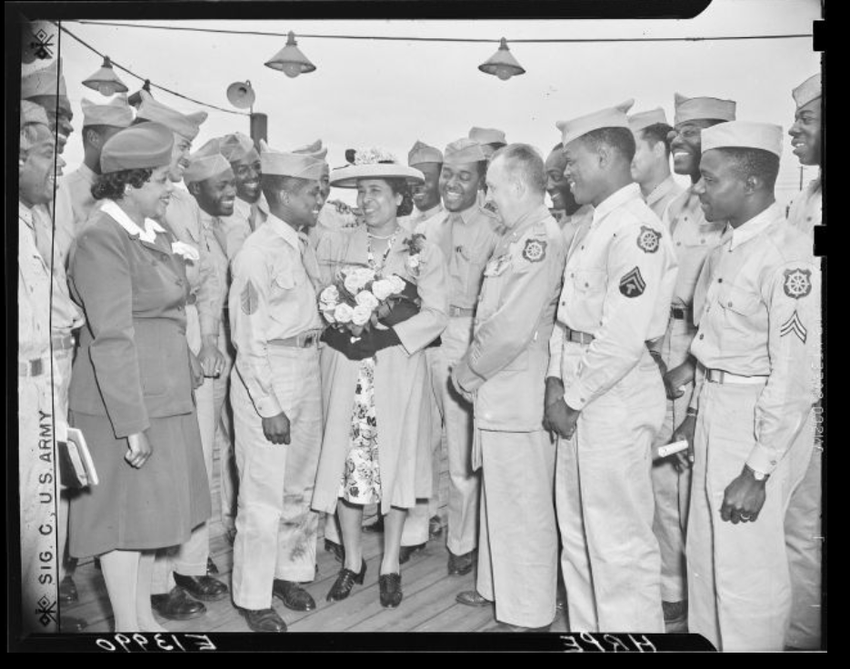 The initial object that caught my eye was the above photo that has the catalog titleAnna Palmer, mother of Camp Hill.I instantly had many questions: Who was Anna Palmer? What is a Camp mother? And what is this Camp Hill? To my knowledge, Camp Hill was abandoned after World War I – could this be the same camp? Although, to be completely honest, I am far from an expert on the Hampton Roads Ports of Embarkation. As it turns out, this photo is one of over 600 in our collection that include some variation of “Camp Hill, HRPE” in the inscription on the reverse – the Army Signal Corps was diligent in their accurate labeling of photos.