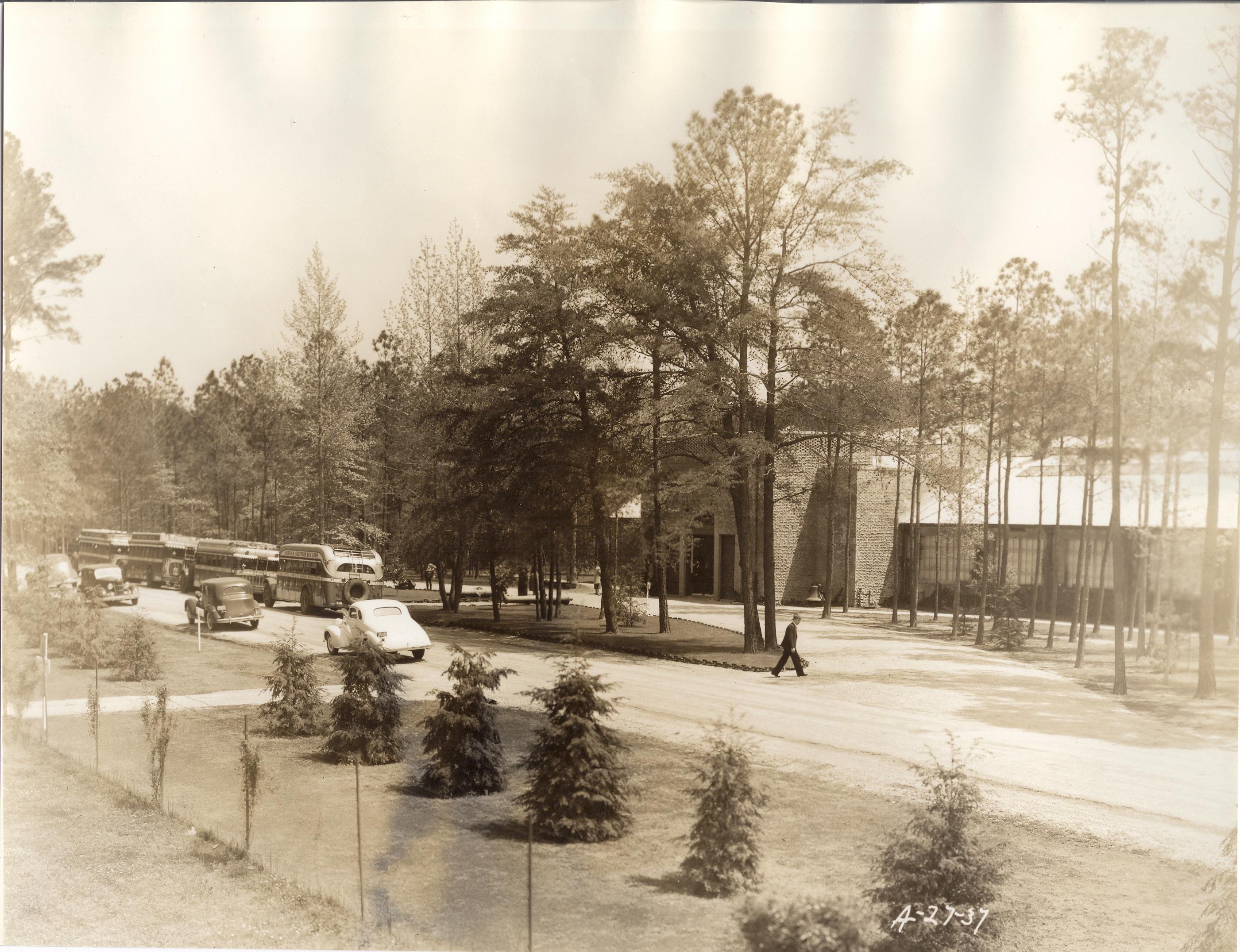 In our early days, we often simply placed objects all over tables to show off as much of the collection as possible. Of course this left them easily exposed to damage and theft, so we no longer display them like this, but it still looks neat. This image is from 1934 and features a small portion of our scrimshaw collection. The finest piece is that large panbone next to the paddle from 1857/1858 depicting the Civic Heroes of the American Revolution and the Washington Monument at Richmond. It was made by Nathaniel Sylvester Finney, a veteran whaleman.