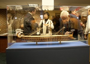 | 2010年12月7日星期二,图书馆迎来了水手博物馆青铜门协会和图书馆之友的“揭开三棱河的面纱”。这次活动展示了图书馆的最新展品,一个由模型制造者马克·威尔金斯(Mark Wilkins)建造的希腊三柱马车的比例模型。今晚最精彩的部分是约翰·海兰德博士关于三列船历史的报告。海兰德博士是克里斯托弗纽波特大学的历史学助理教授。在其他与Trireme相关的新闻中,标记你的日历2011年3月17-18日,当CNU的Trible图书馆的朋友和水手的朋友博物馆图书馆主办“Trireme的庆祝活动”。为期两天的活动将包括一个关于“三列姆斯和雅典民主”的小组讨论和一个关于“奥林匹亚赛艇”的演讲。请继续关注更多细节! |