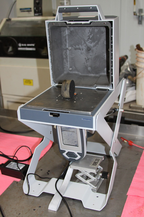 Recently one of the nut guards was removed from the turret so that the sediment could be carefully removed. The plate was then isolated in a small treatment tank where it underwent desalination. The nut guard did not fare well in the ocean because the plate is made of relatively thin wrought iron sheet. Numerous holes have rusted through the sheet and the curved edges are very fragile. It has been soaking in a pH 12 sodium hydroxide (NaOH) solution while undergoing mild electrolytic reduction. The chloride level extracted into the solution has been stable for several weeks. On Tuesday we changed the solution one last time. We also washed away quite a bit of soft surface rust and corrosion flakes in the process. The surface looks surprisingly good after having spent a hundred and forty years on the bottom of the ocean. Conservators are now soaking the artifact for about two more weeks prior to rinsing the artifact to remove residual sodium hydroxide. The artifact will then be removed from its rinse and then dried. The next challenge is to create a supportive mount to store and display this heavy but very fragile artifact.