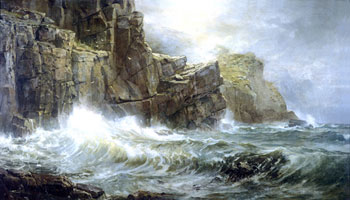 威廉·特罗斯特·理查兹是19世纪美国最重要的海景画家之一。海浪沿着英格兰康沃尔海岸撞击的大气场景反映了他准确描绘陆地和海洋交汇点的能力。