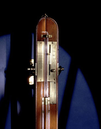 在18世纪70年代早期,爱德华·奈恩通过缩小水槽和记录板之间的玻璃管,成功地建造了第一个海洋气压计。仪器悬挂在安装在独立框架内的万向节上,以提供额外的稳定性。1772-1775年,詹姆斯·库克第二次航行到南太平洋时,奈恩把他的第一个海洋气压计送了过去。这个例子可能被用在库克不幸的第三次航行上。