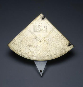 天文学家利用这种罕见的夜间和象限的组合对天空进行精确观测,以绘制星图和进行占星术预测。对于水手来说,仪器是用来测定纬度的。该仪器的象限侧包含两个用于观测北极星的瞄准镜和一个用于读取纬度的度标。读数取自北极星,并用校准表进行调整,以确定恒星围绕正北运动所造成的误差。该仪器上印有“QUADRANS HORARIUM ADLATIT CRAWD XLIII MXL”字样,表明它将在纬度43度时每小时使用一次。