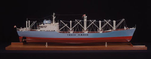 11,000吨丹麦汽车Trein马士基在建造时代表了最先进的一般货物装卸技术。这艘船专为美国和远东港口之间的服务而设计,配备了冷藏空间和绝缘罐等功能,用于运输植物油或乳胶等液体货物。