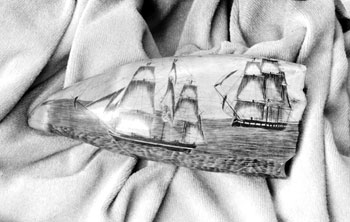 在捕鲸船上工作的人忍受着海上商业企业中最恶劣的工作条件。在捕鲸船上,水手们经常经历长时间的无事可做。许多人利用这段时间在鲸鱼的牙齿和骨骼上蚀刻图像,其中一些部分被认为是商业上无关紧要的。