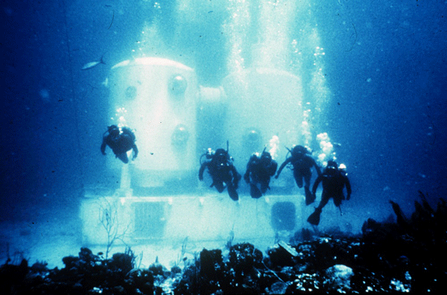 在水下,Tektite实验室让科学家可以更长时间、更近距离地探索海底。