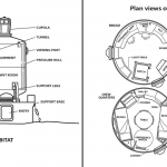 似曜岩类它是潜水者在海底生活期间的家和研究船。Tektite I住宅是由通用电气公司设计和建造的。它有电缆连接到岸上的系统,提供空气、水和电力。5它必须足够坚固,能够承受海洋的压力。你越往下走,压力就越大。这是一对18英尺长的钢制容器,由一根管子连接,潜水员可以在两个容器之间移动。船员们的住处是四个狭小的睡觉空间,有有机玻璃的舷窗可供观赏。6左边的坦克包括船员的住处和舰桥或指挥中心。正确的水箱是机器室和潮湿的房间,船员们在那里穿上和脱掉他们的装备。右边的坦克在顶部也有一个冲天炉,潜水员可以向外看。冲天炉就像一个小圆屋顶,通常在一个较大的屋顶或天花板的顶部。地面上也有一个营地。除了四名潜水员,所有其他船员都将在这里生活和工作,以监测Tektite的栖息地和下面的船员。7