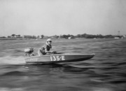 Racing small, lightweight boats with powerful outboard engines became a popular sport in the United States after the Second World War. Giving up comfort for speed, drivers knelt with one hand on the throttle and one on the steering wheel.