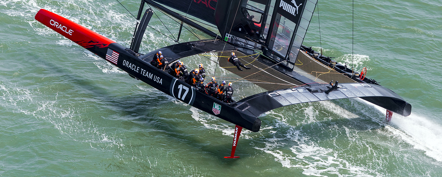 上图:甲骨文美国队AC72赛艇(信用:古利安·格雷尼尔,甲骨文美国队)